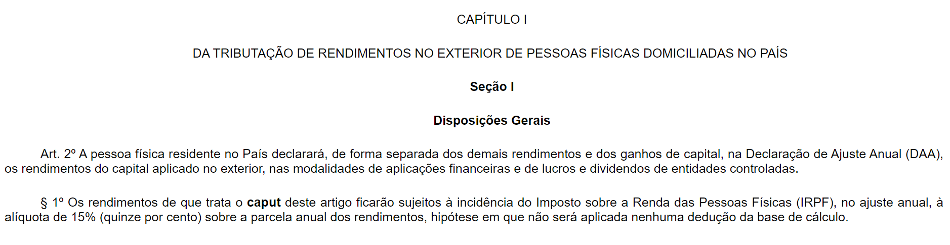 Imposto brasileiro sobre ganho de capital e rendimentos no exterior (15%)